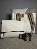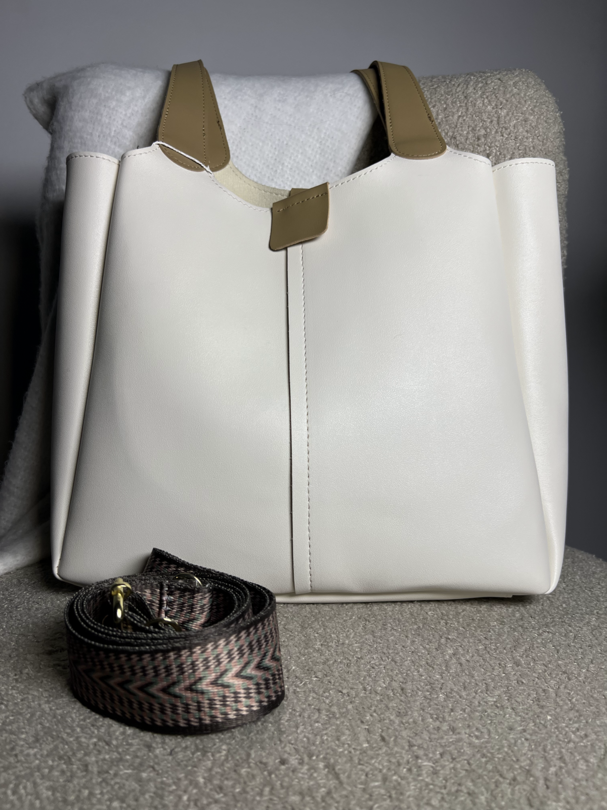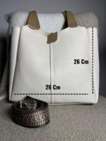 تأتي الشنطة مع حزام قماش يمكن ارتداؤه ككروس أو على الكتف، مما يوفر راحة إضافية أثناء الحمل. بالإضافة إلى ذلك، تحتوي بداخلها على حقيبة صغيرة إضافية يمكن ارتداؤها بشكل منفصل ككروس، مما يمنحك مرونة في الاستخدام ومظهرًا مميزًا لكل مناسبة.
