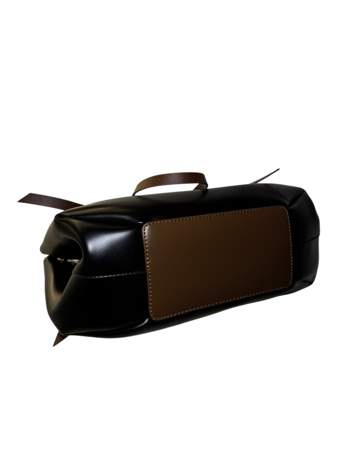 Sleek design with minimalist branding and contrasting straps.