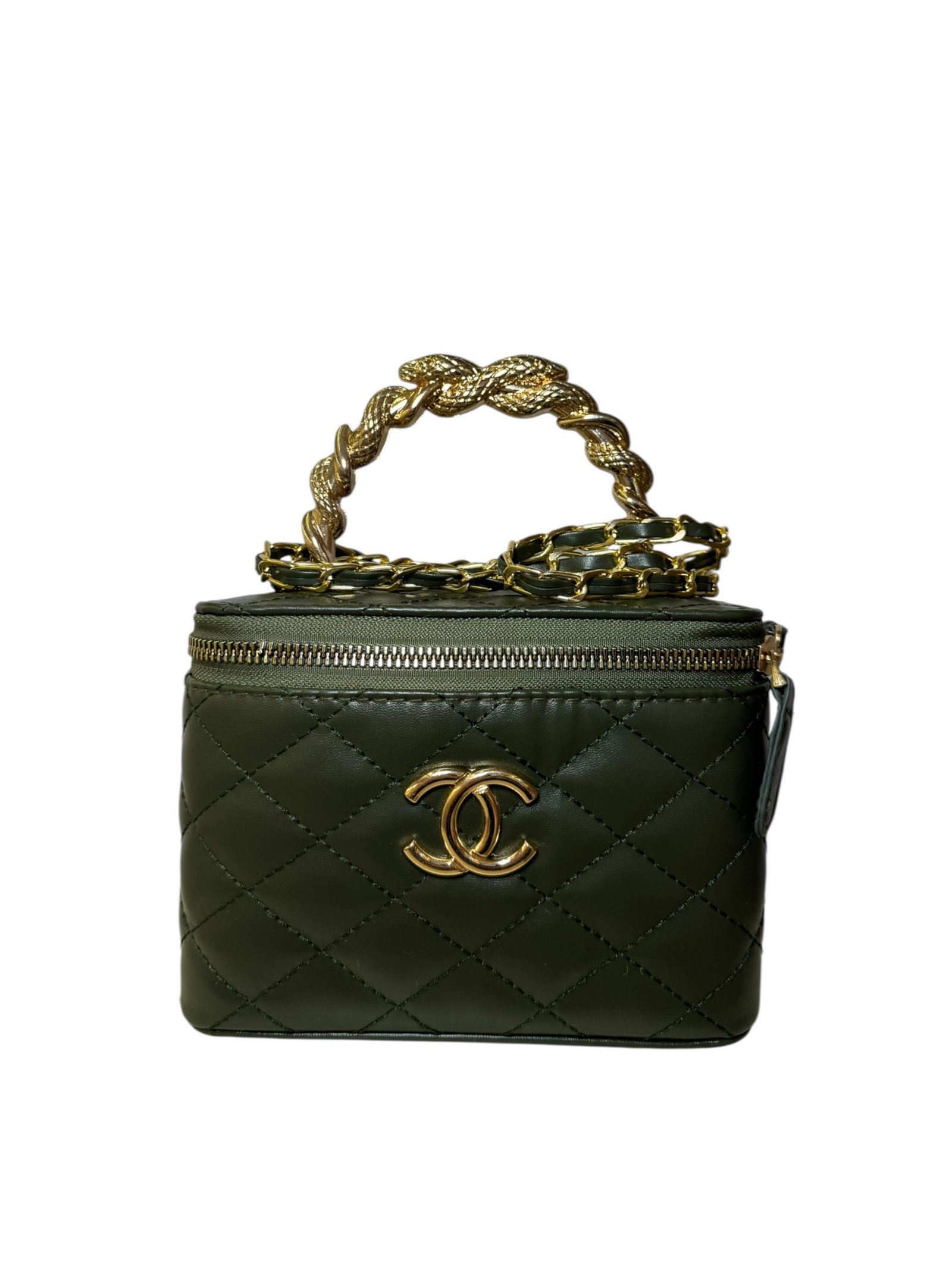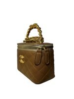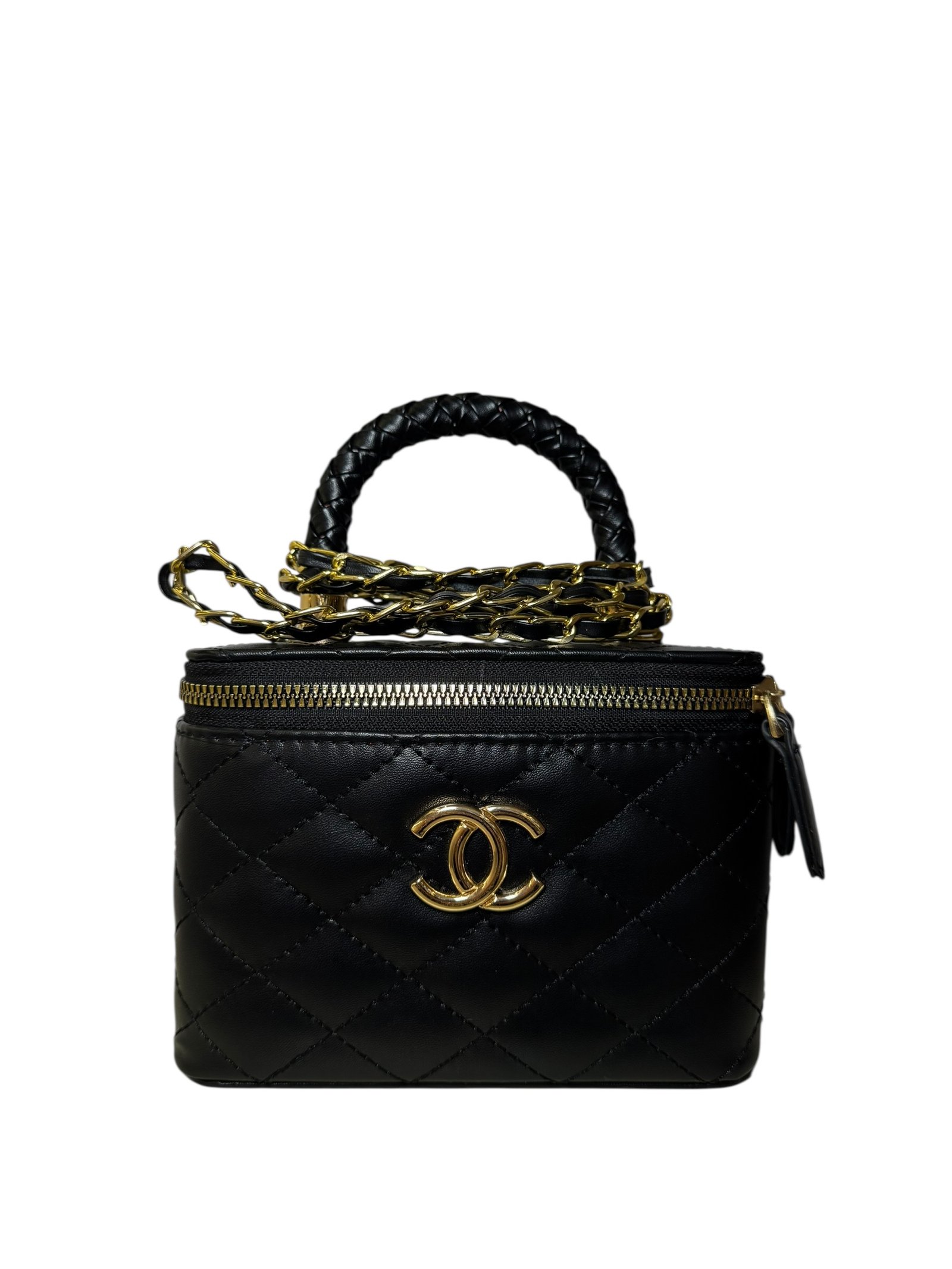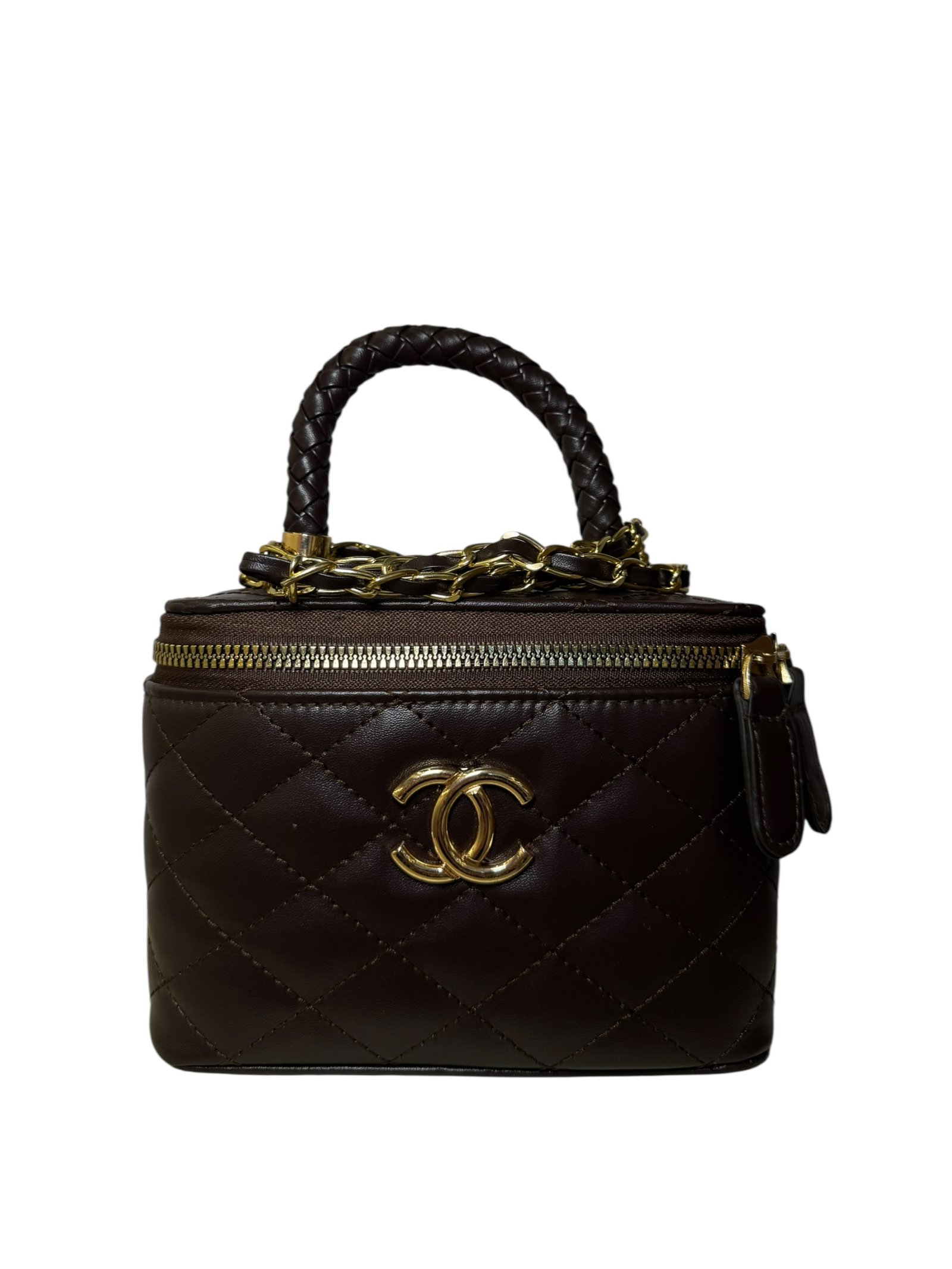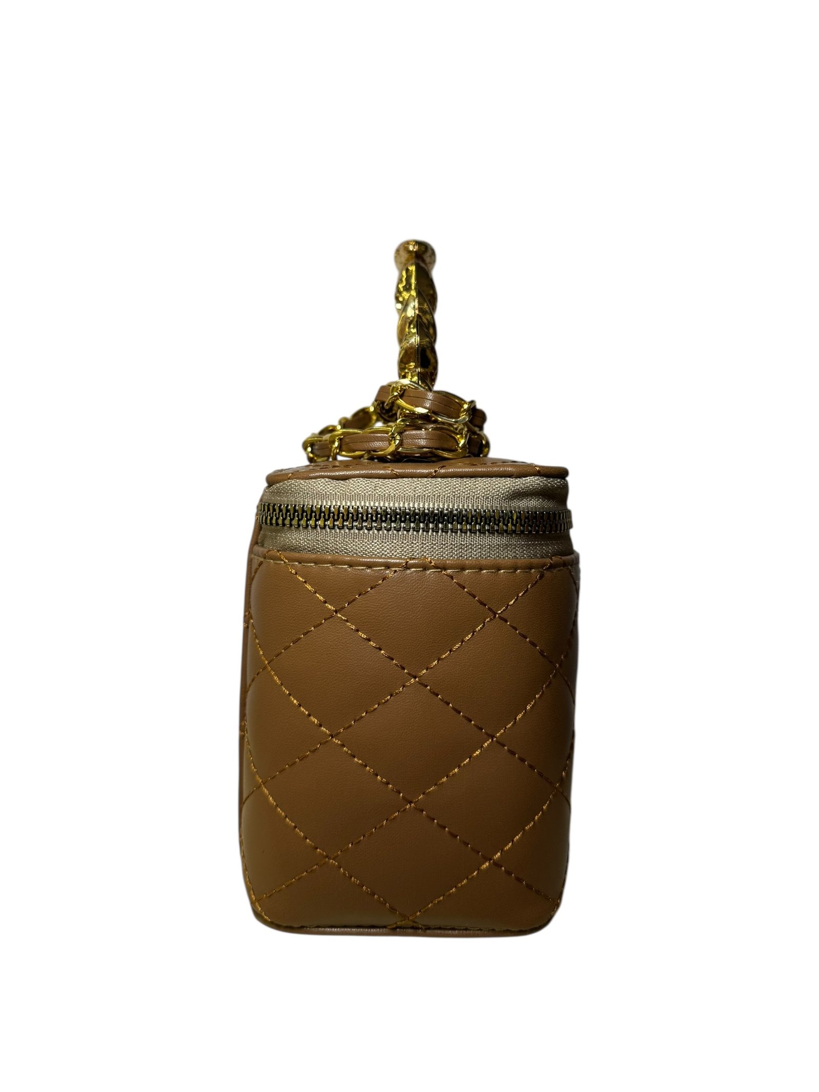 Gold Logo: Centered CC hardware for a bold, elegant finish.