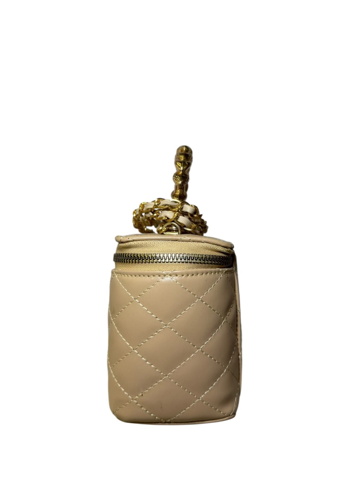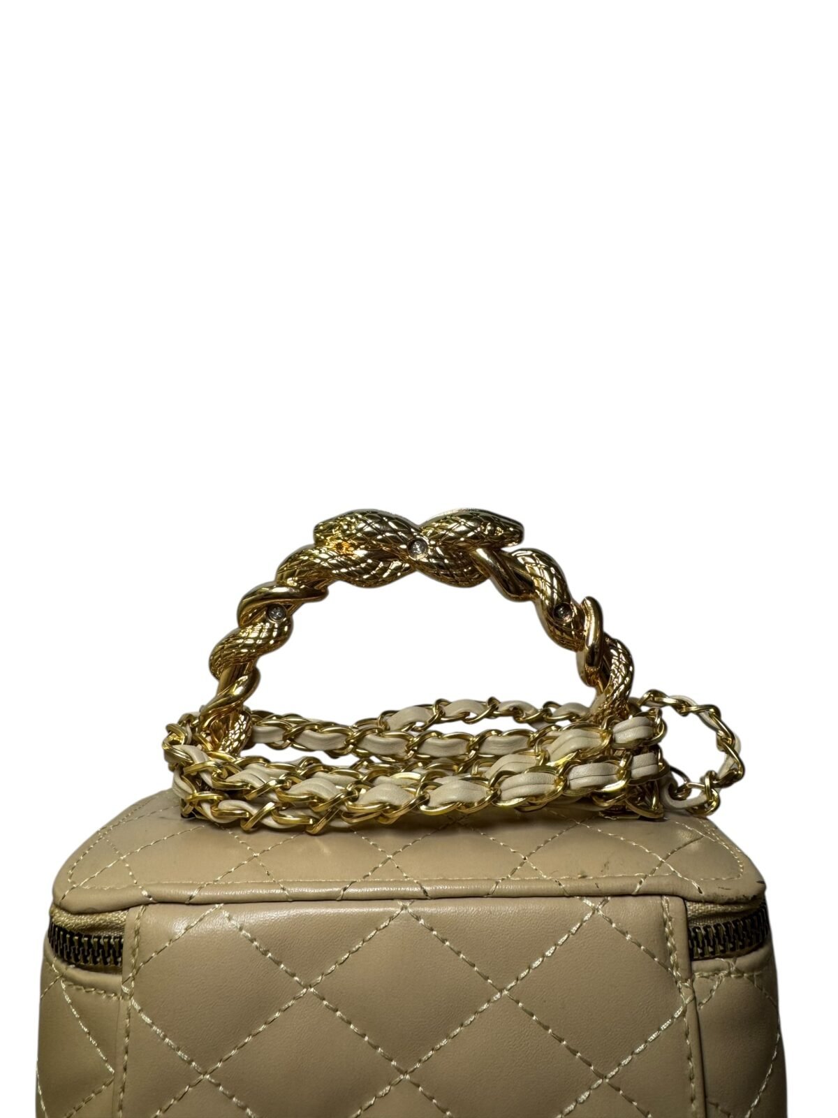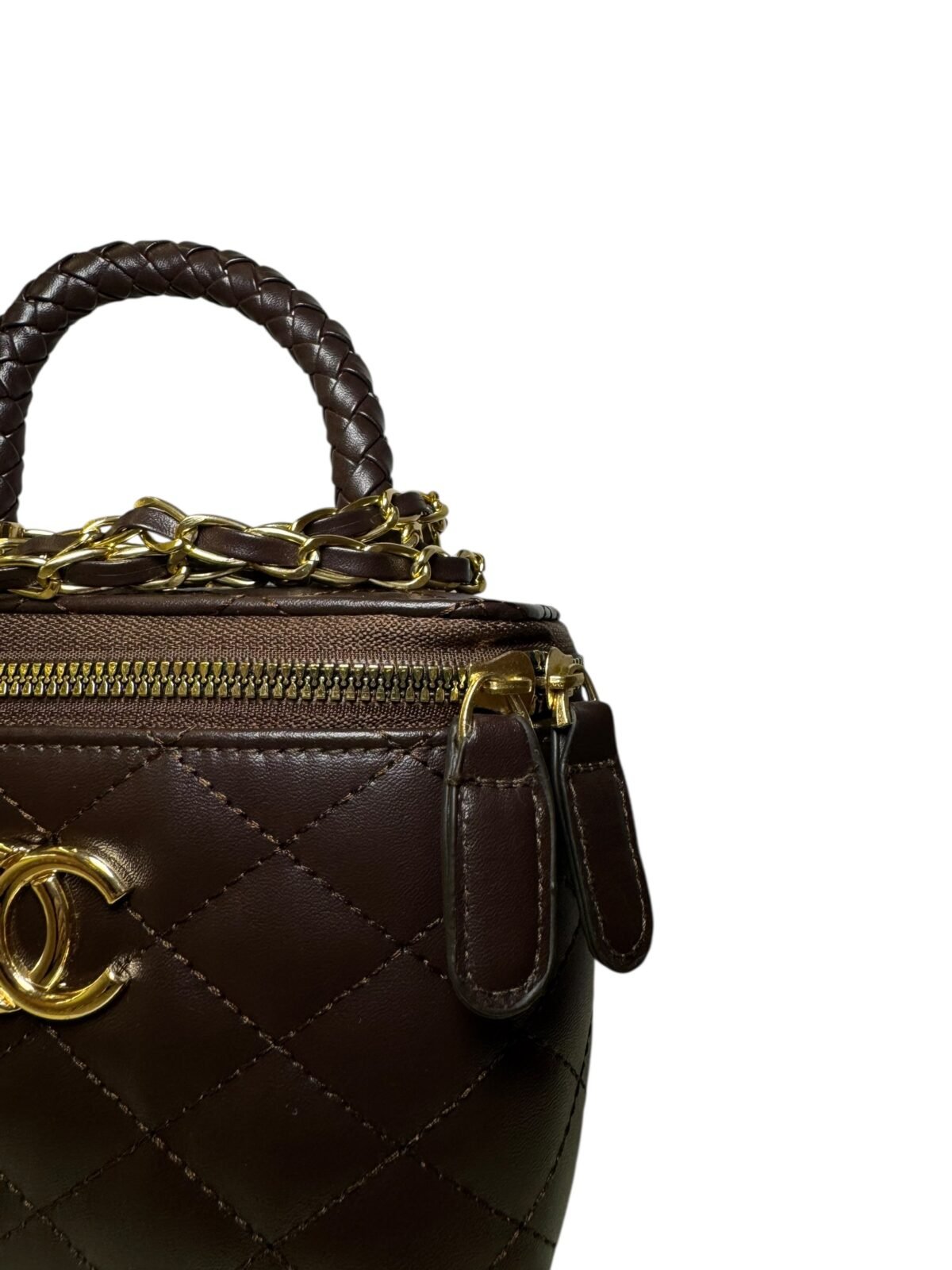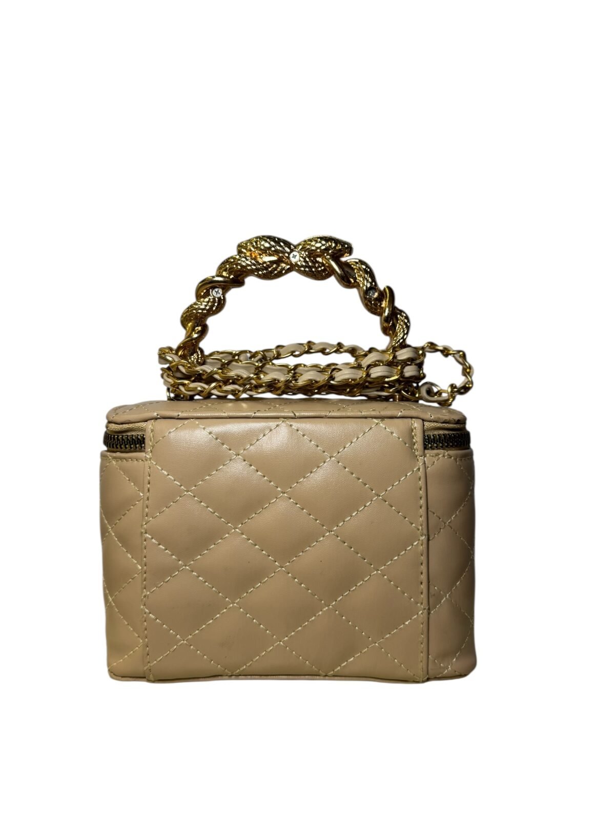 Gold Logo: Centered CC hardware for a bold, elegant finish.