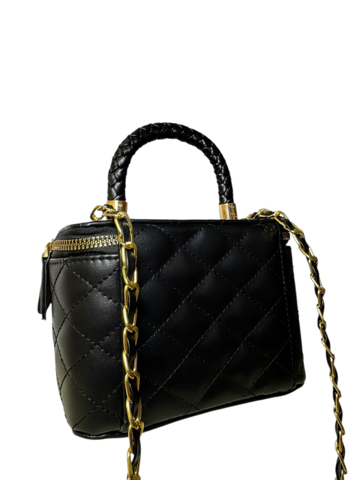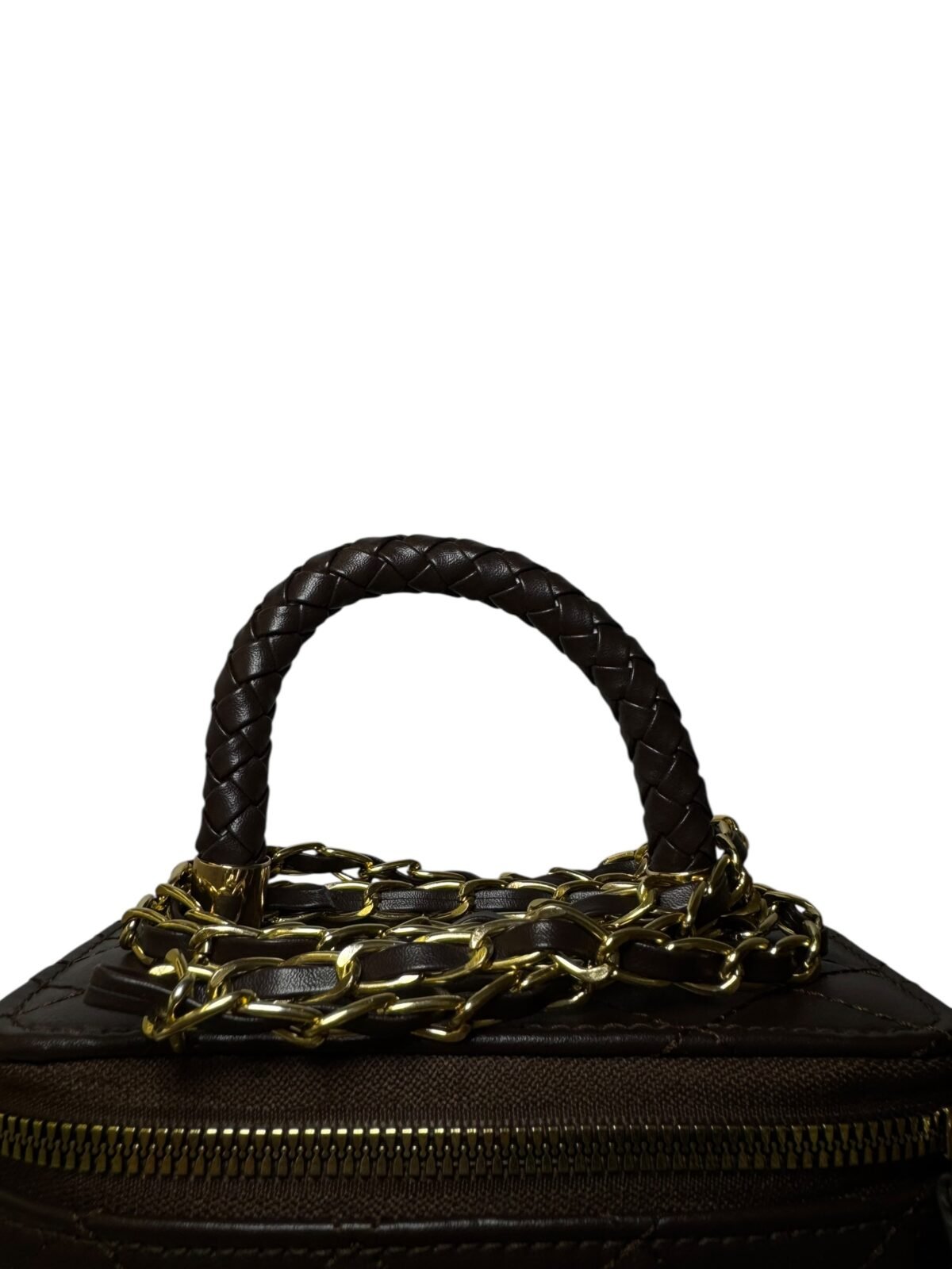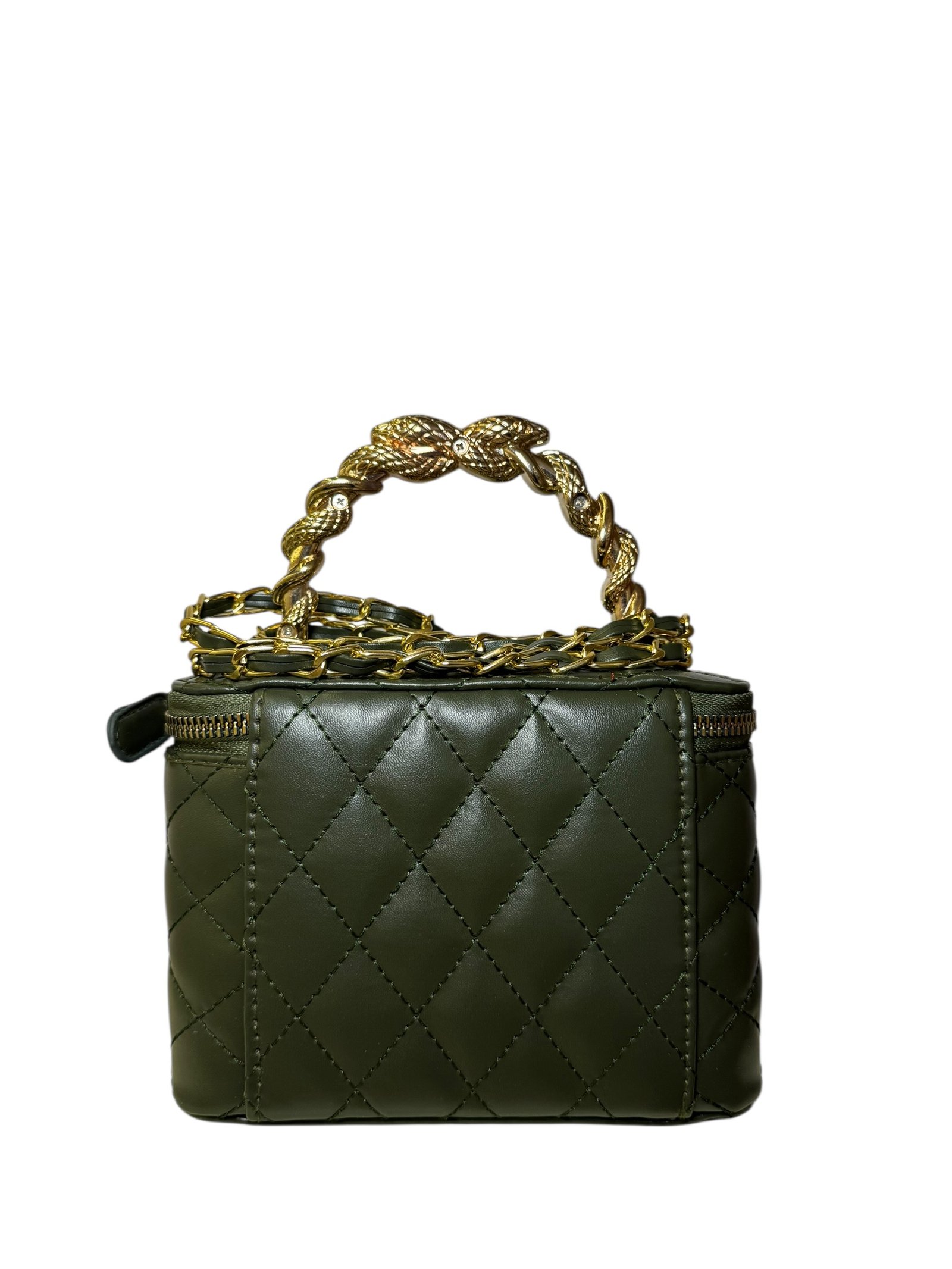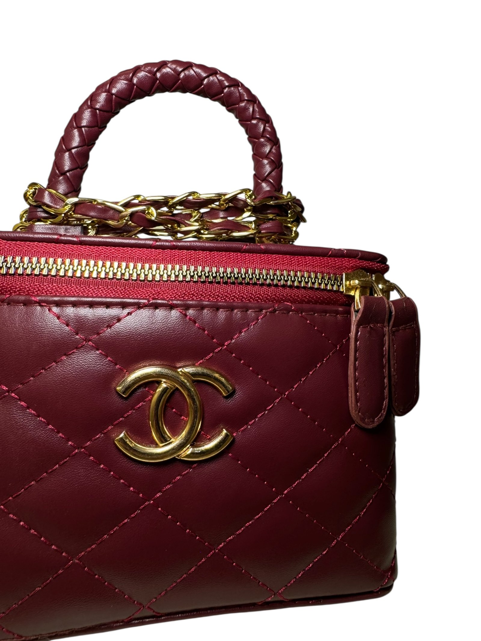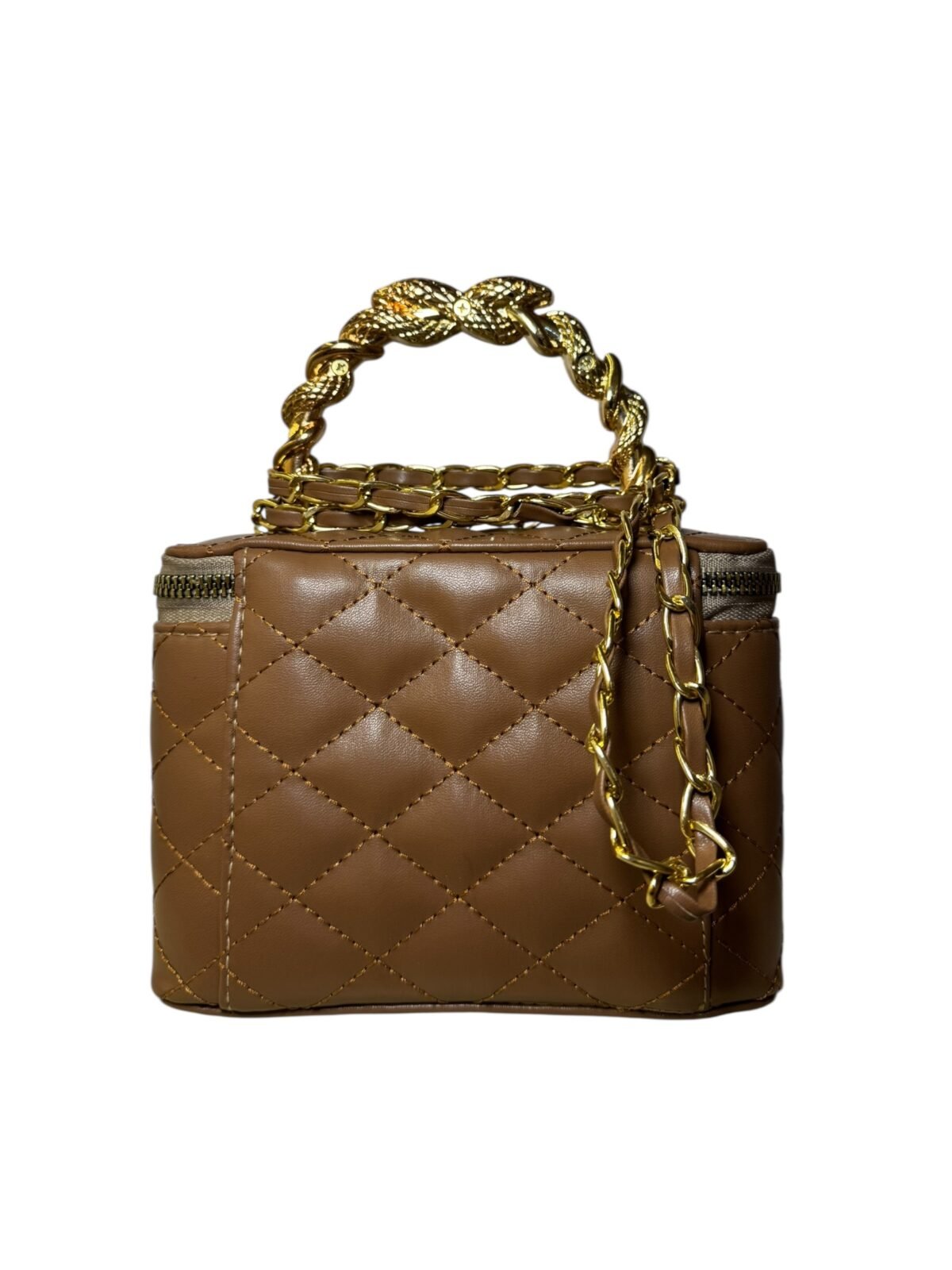 Gold Logo: Centered CC hardware for a bold, elegant finish.