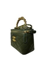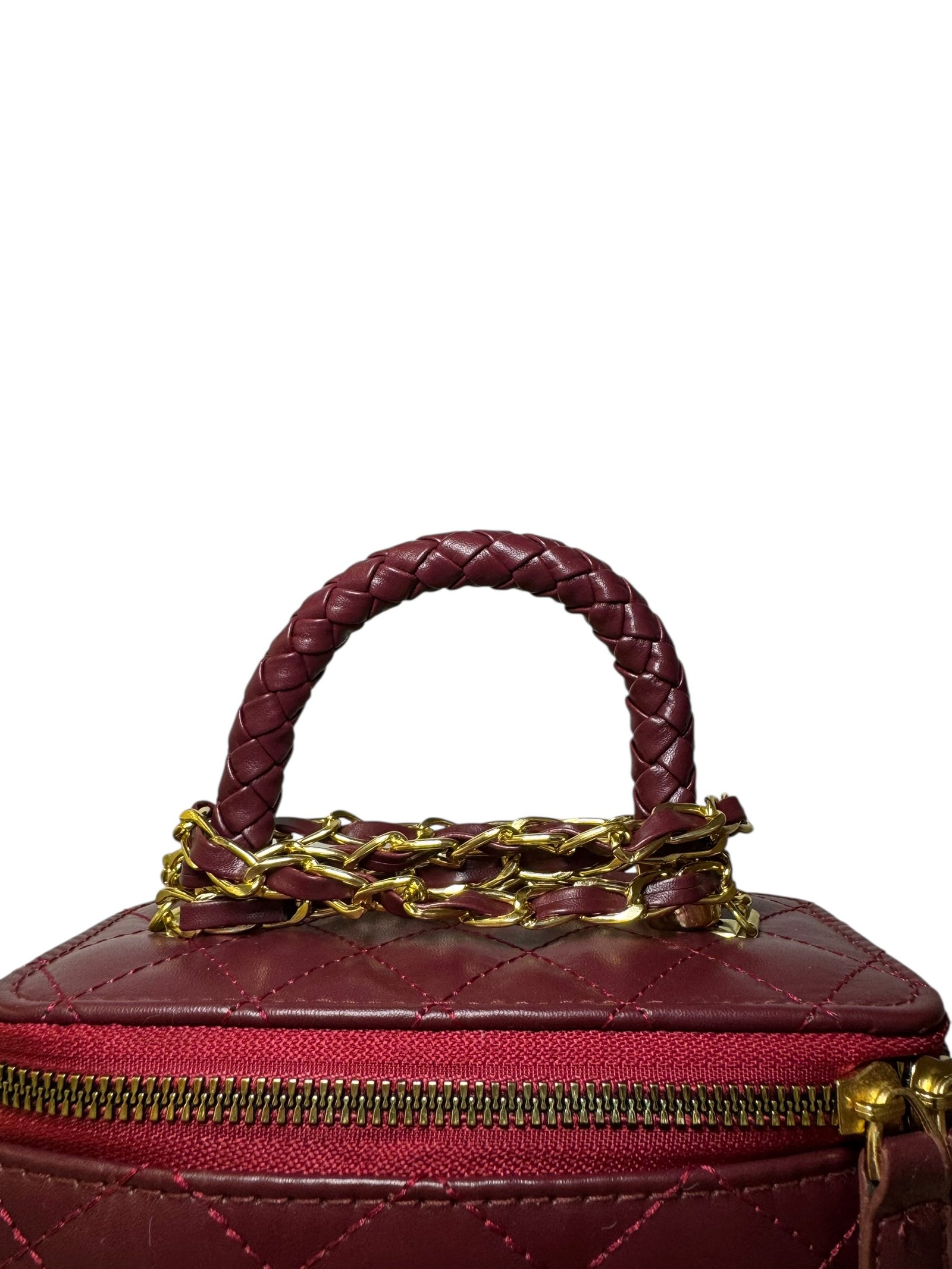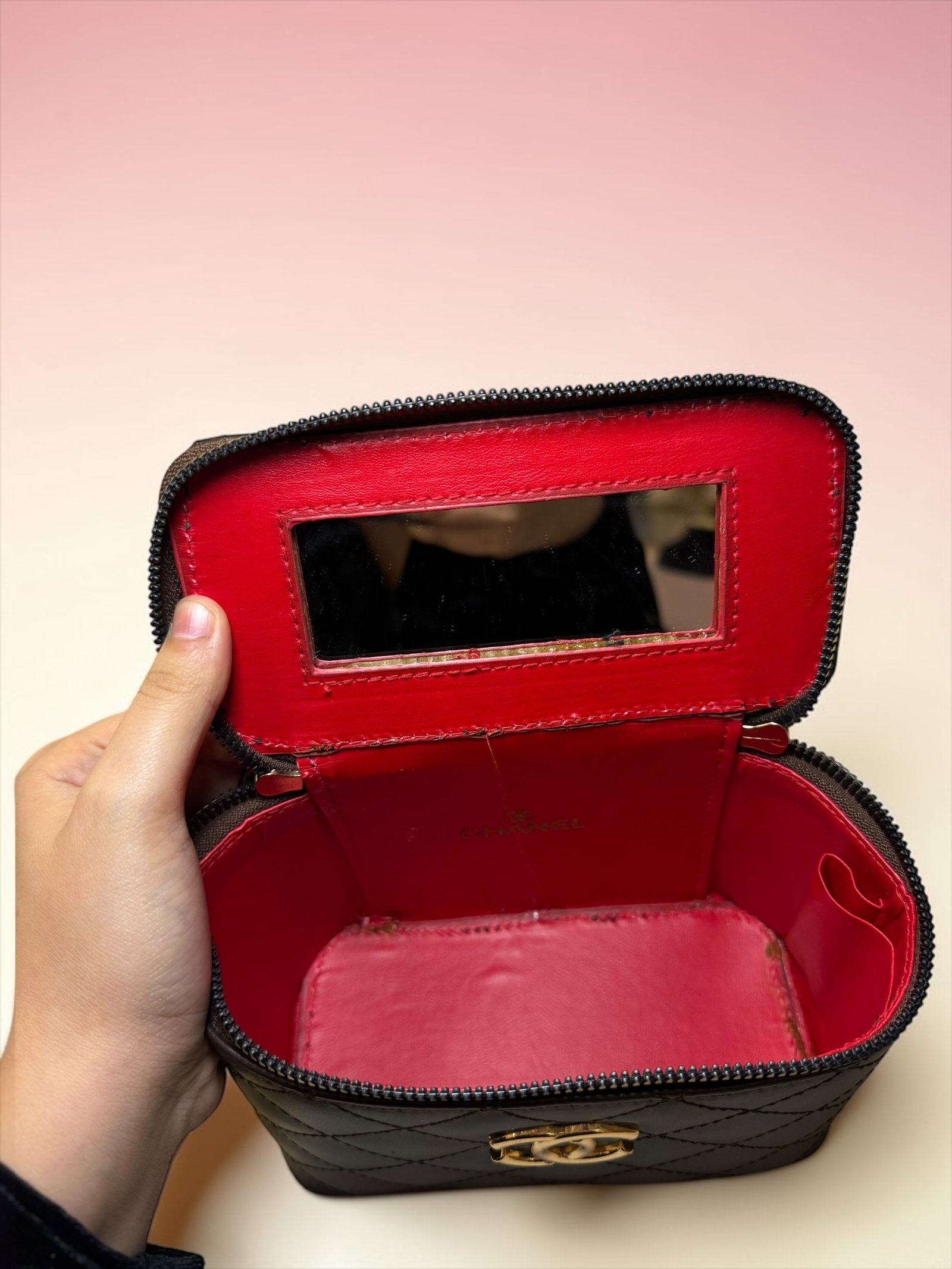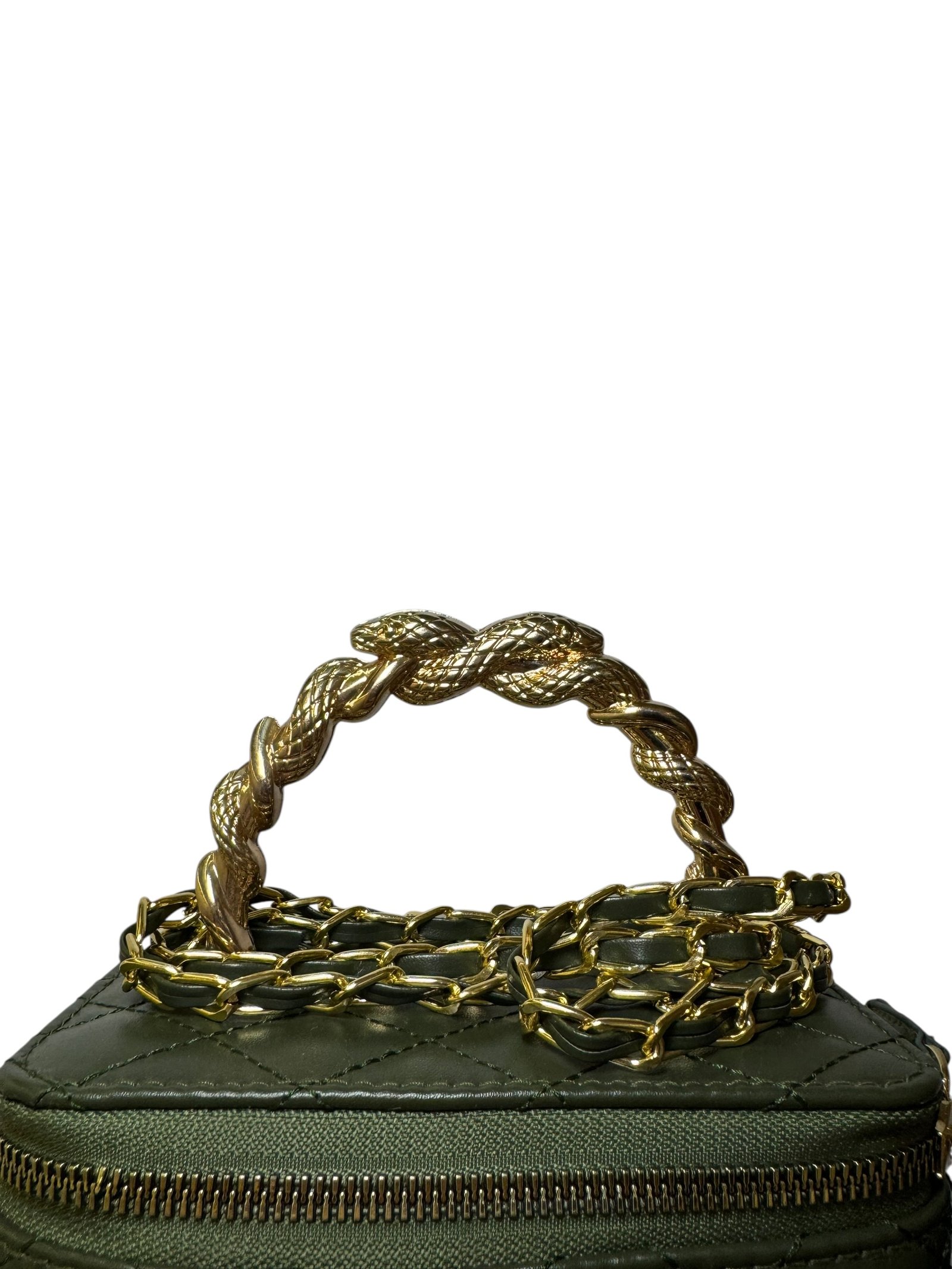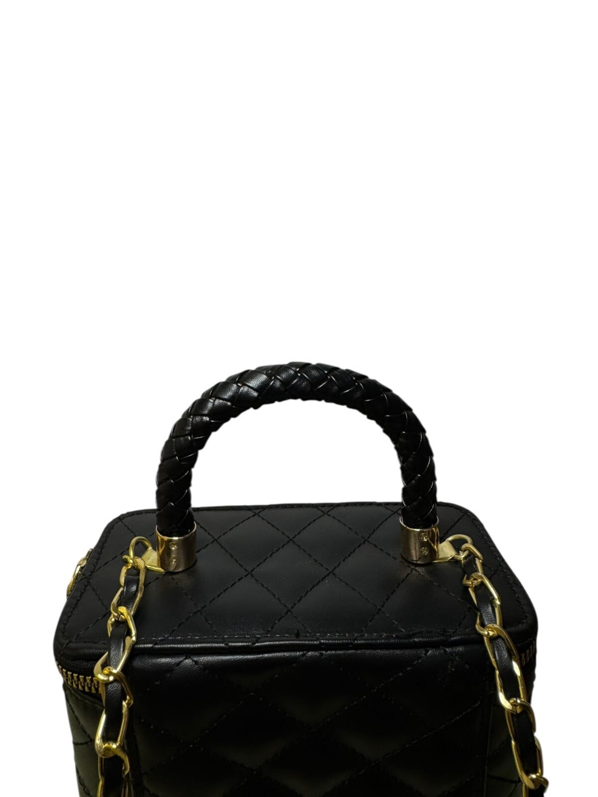 Gold Logo: Centered CC hardware for a bold, elegant finish.
