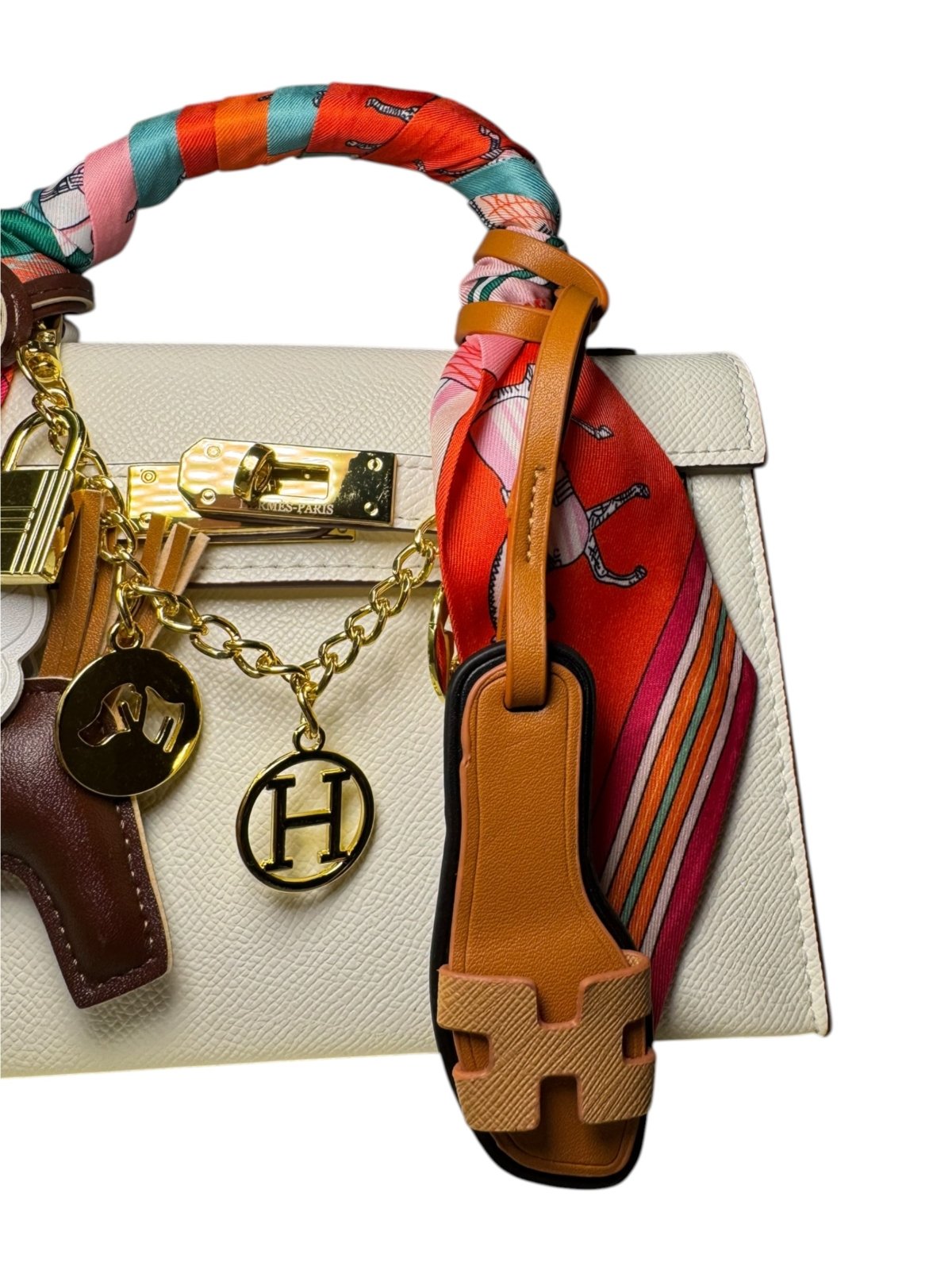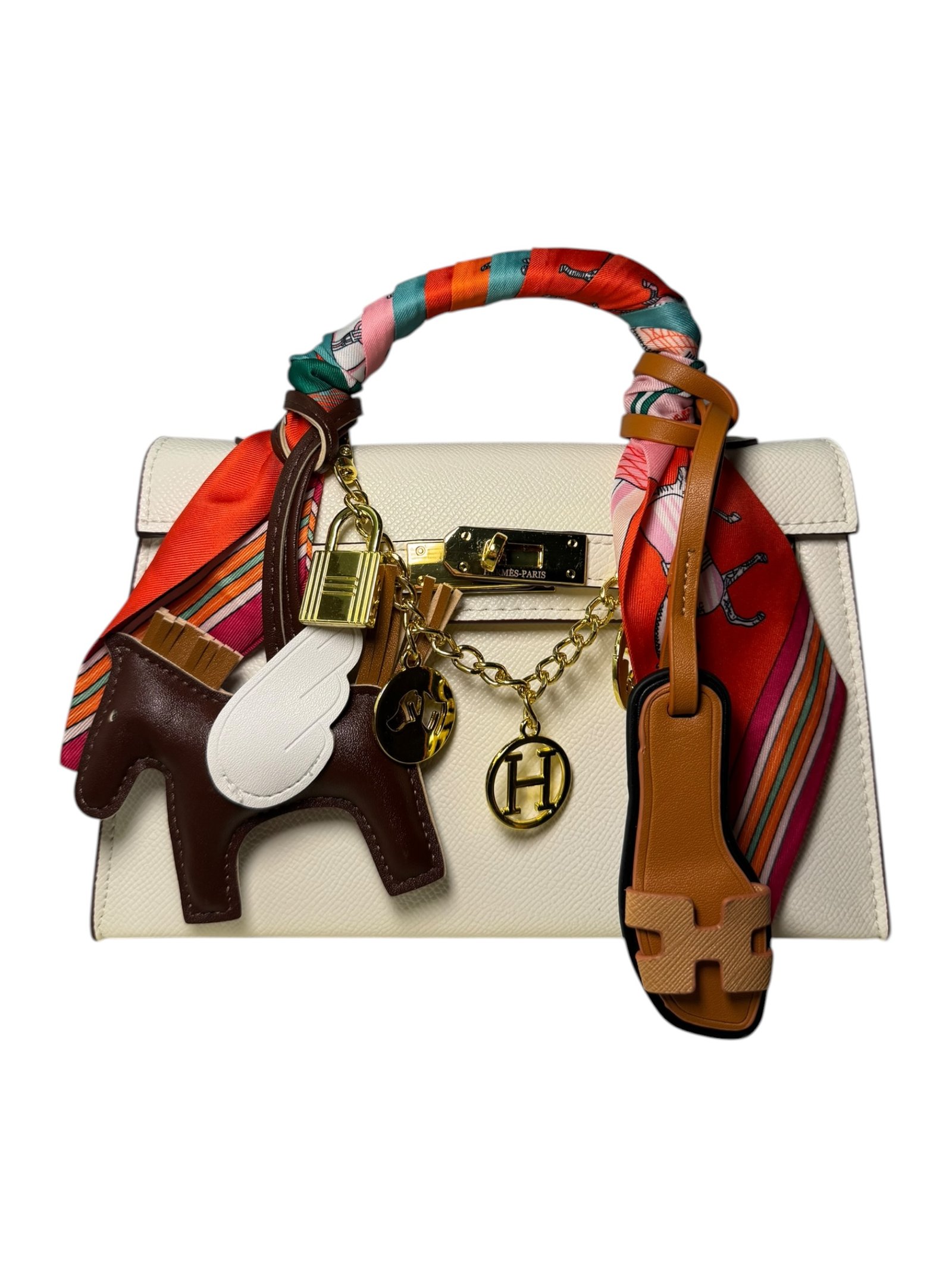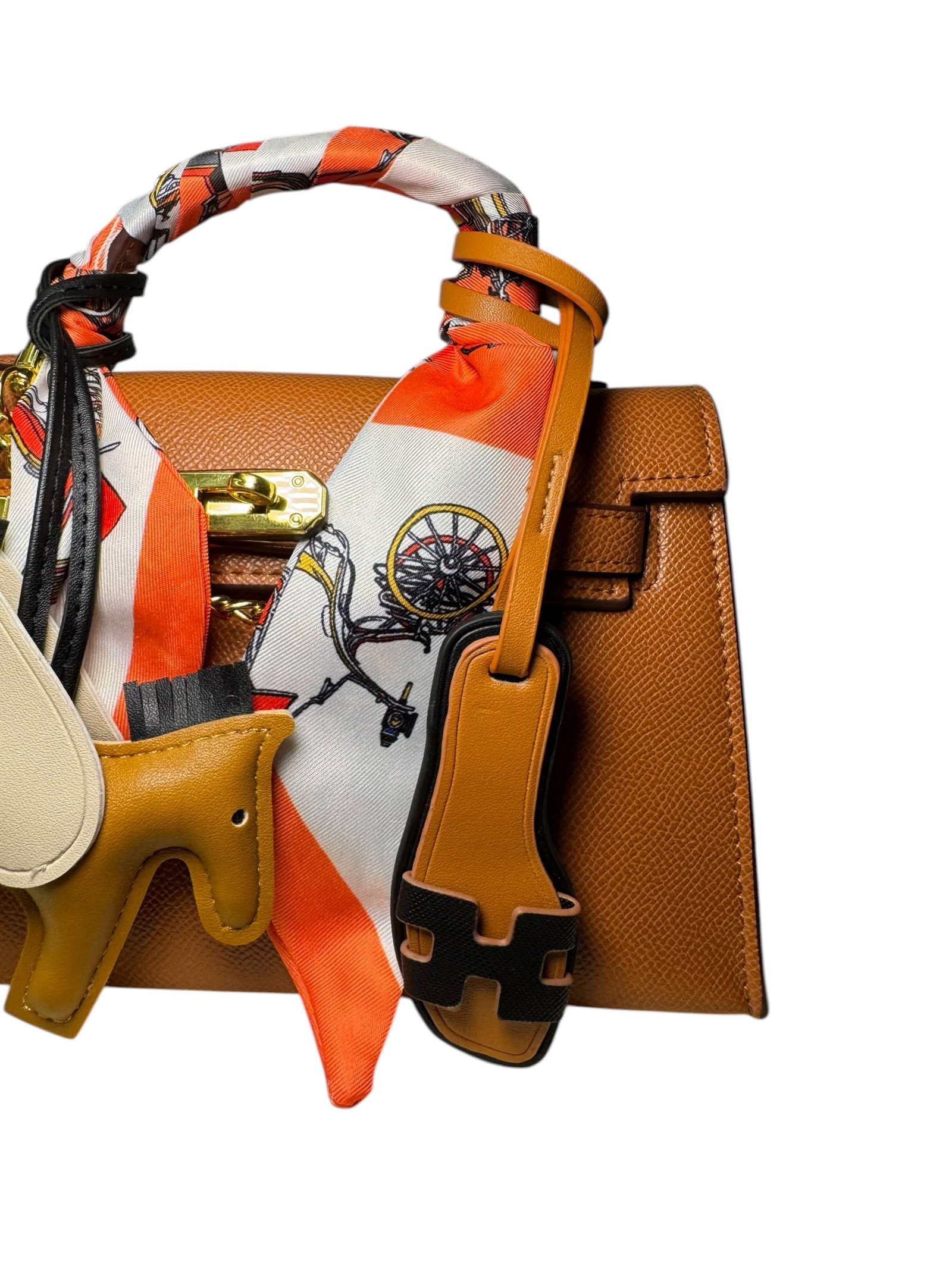 الإضافات: حصان جلد + إسكارف حرير + سلسله.