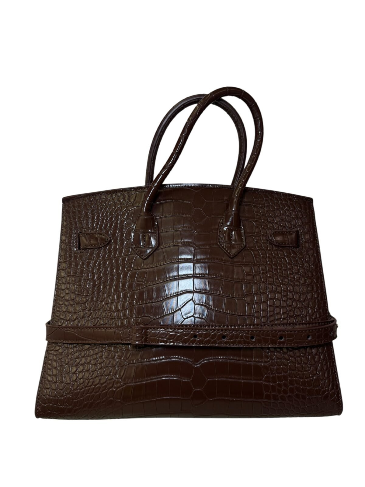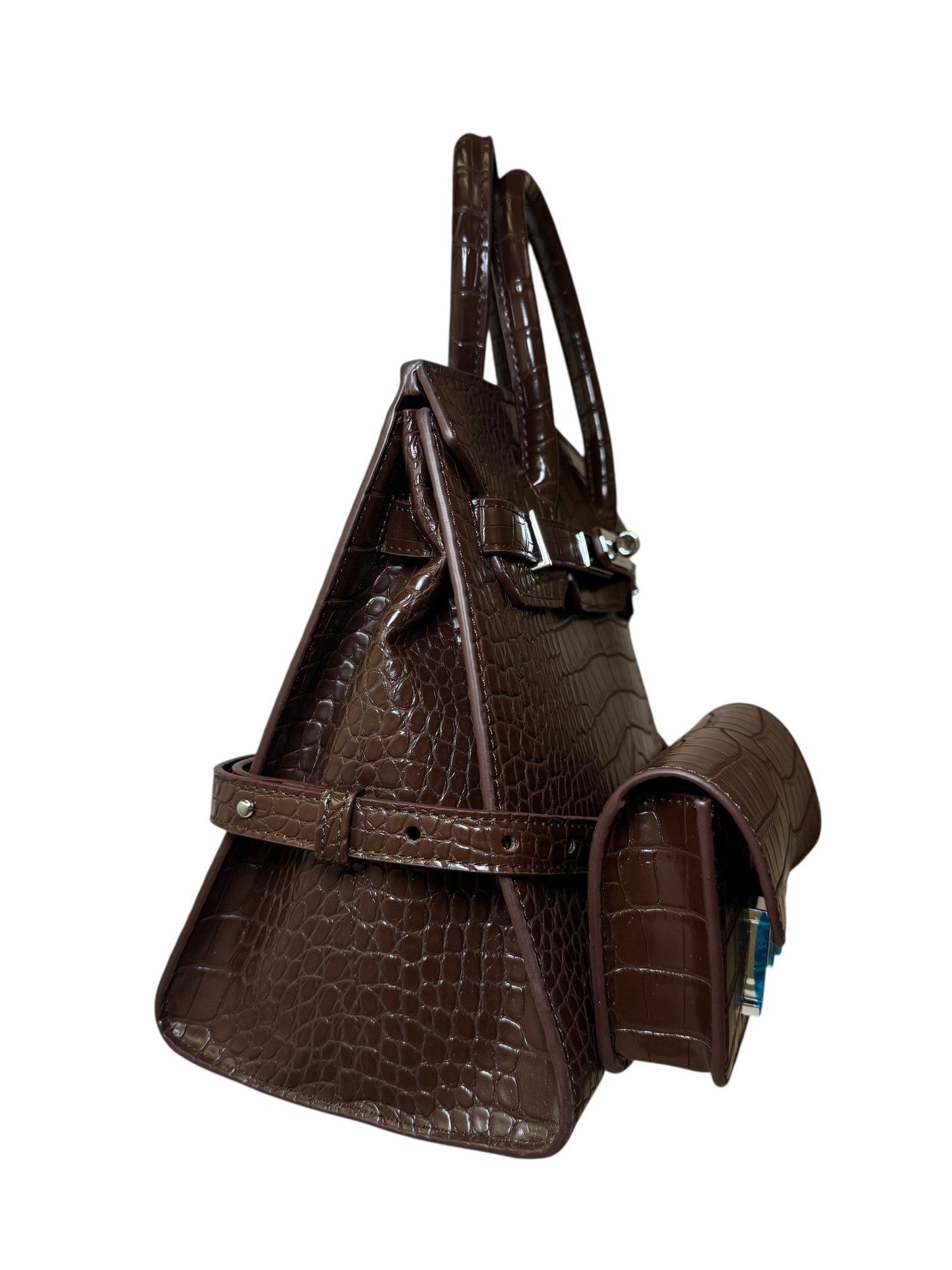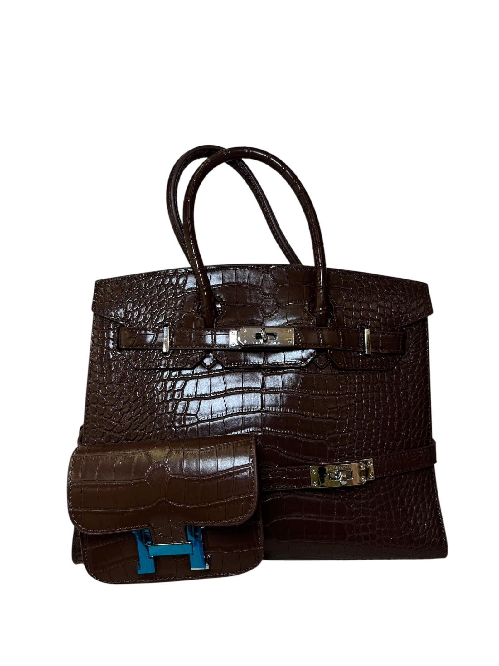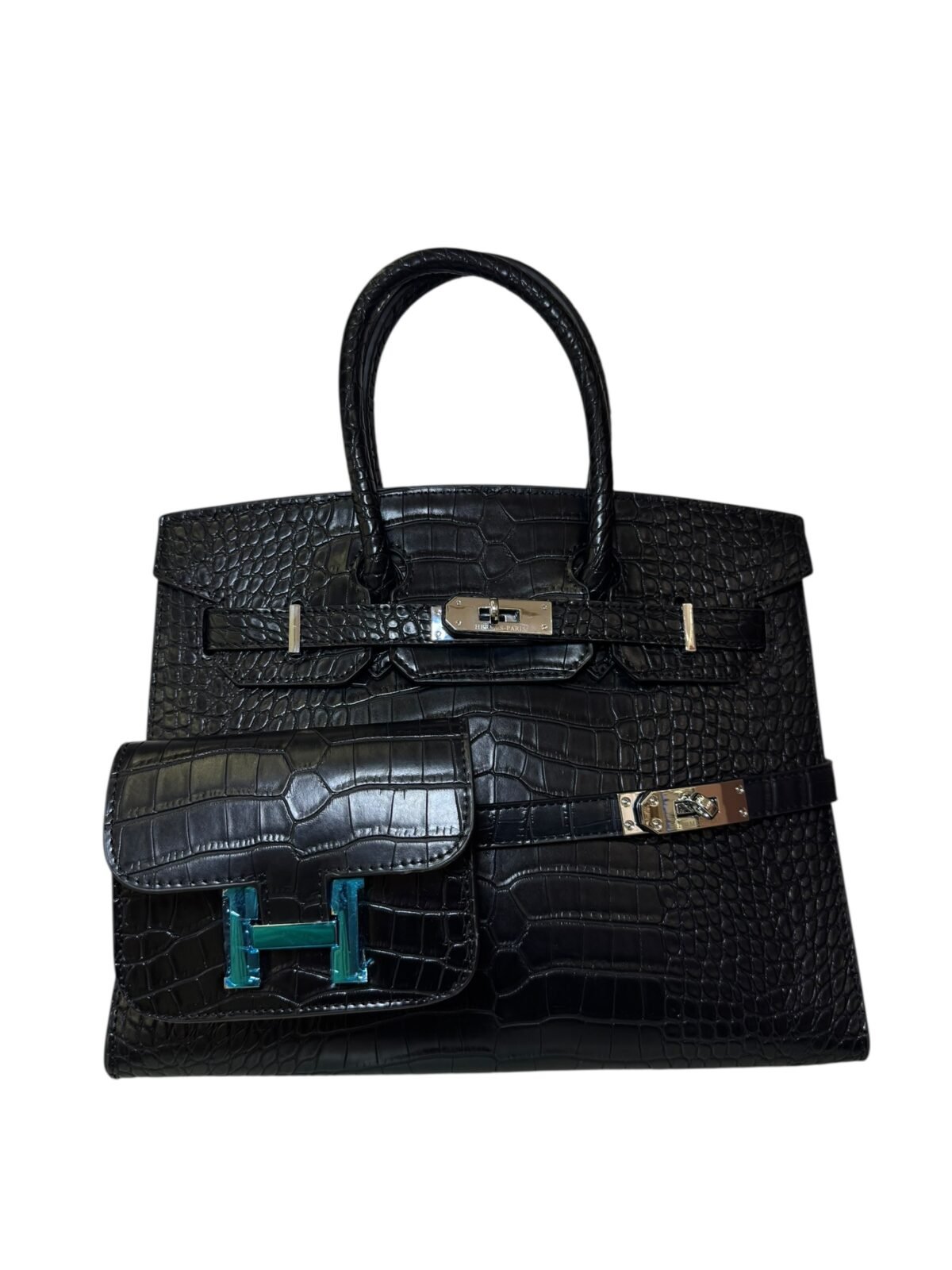 Main Handbag: Premium crocodile-embossed top-handle bag.