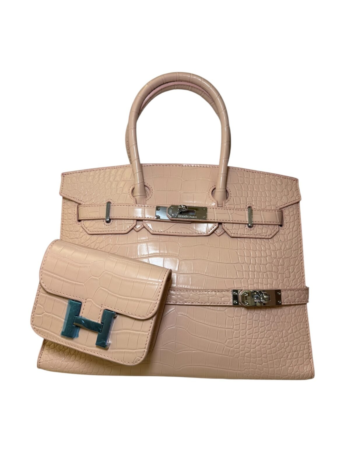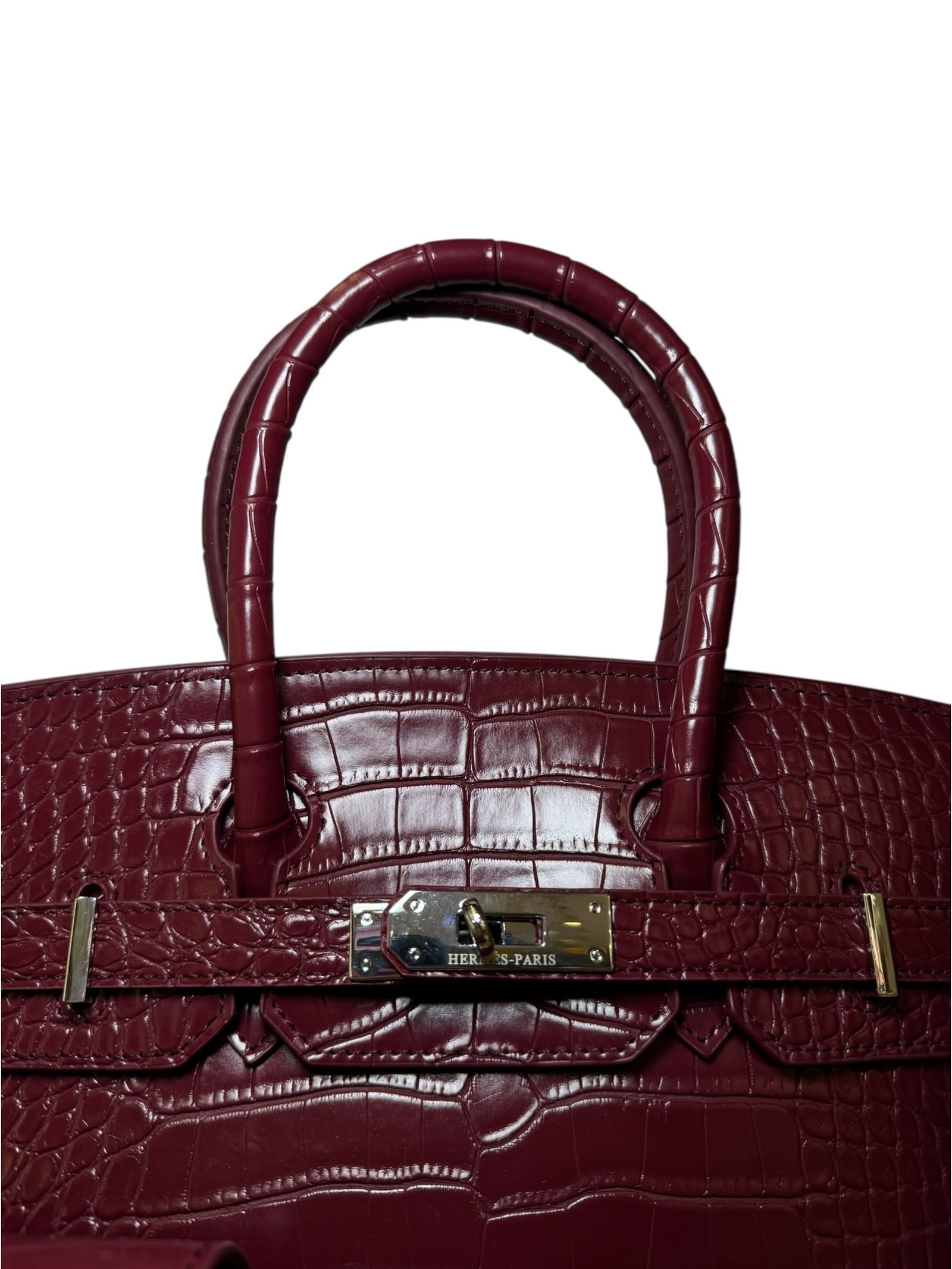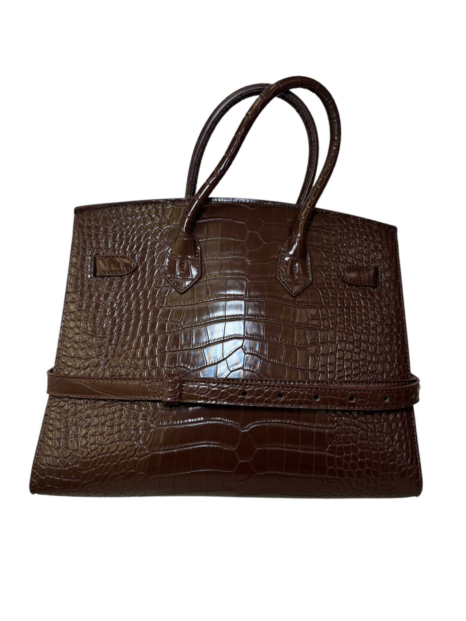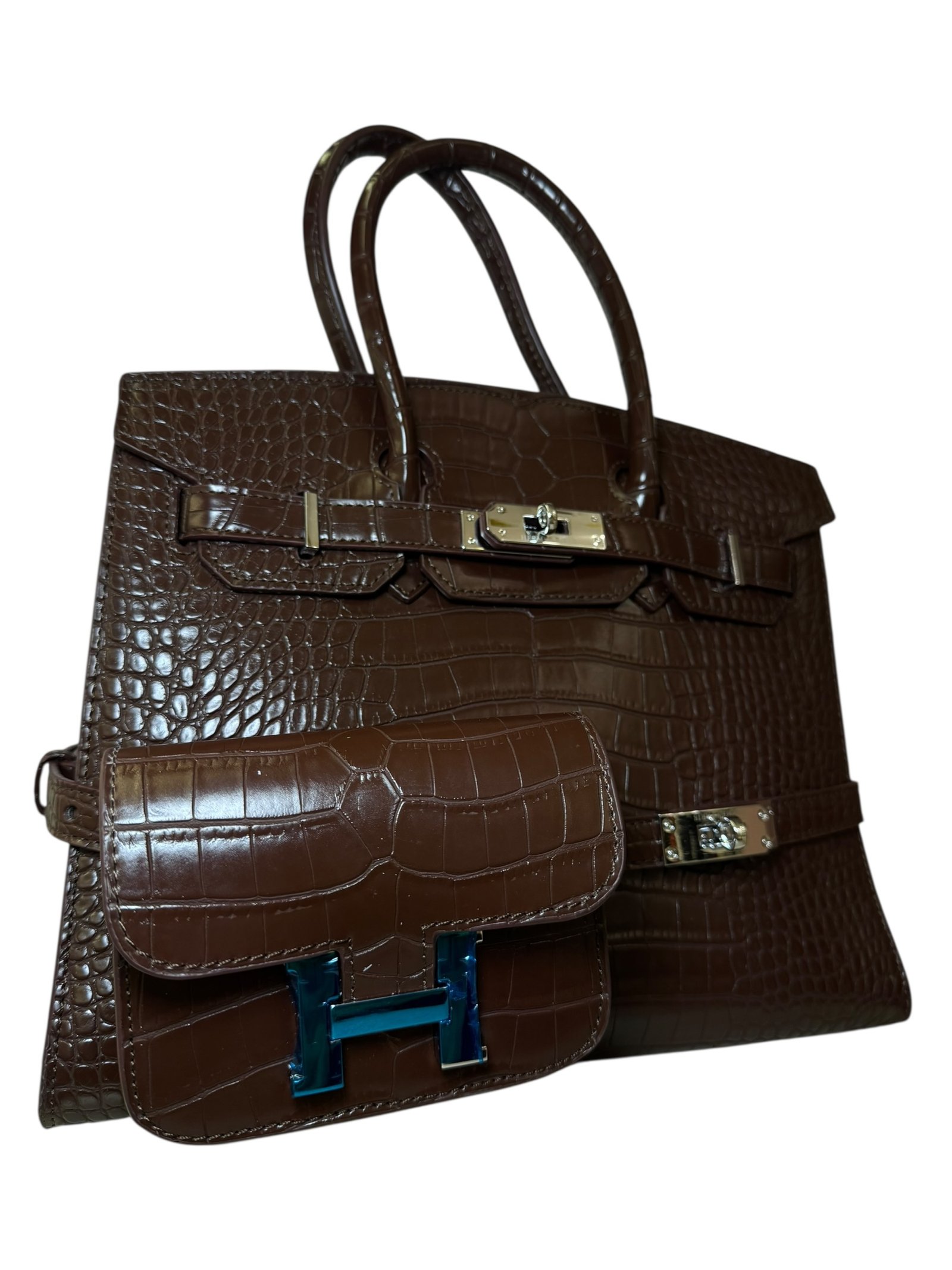 Main Handbag: Premium crocodile-embossed top-handle bag.