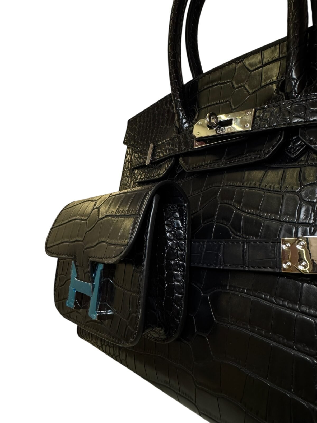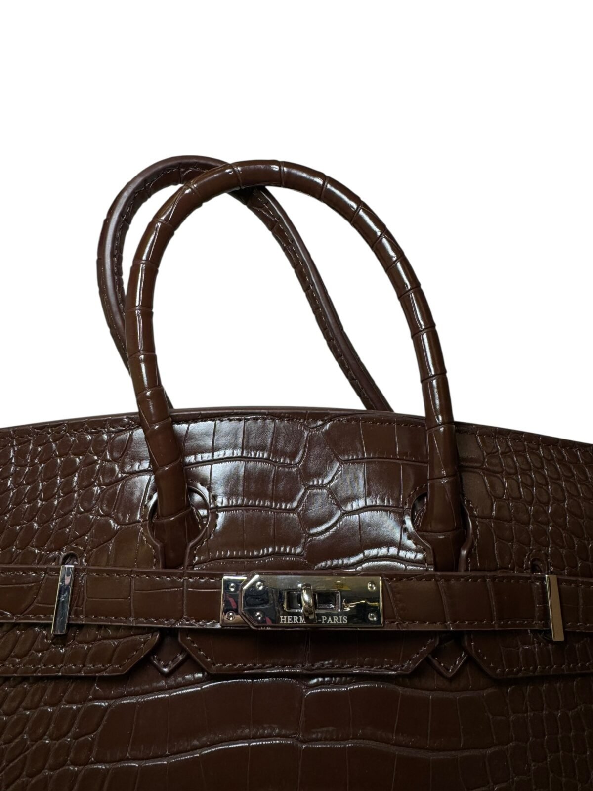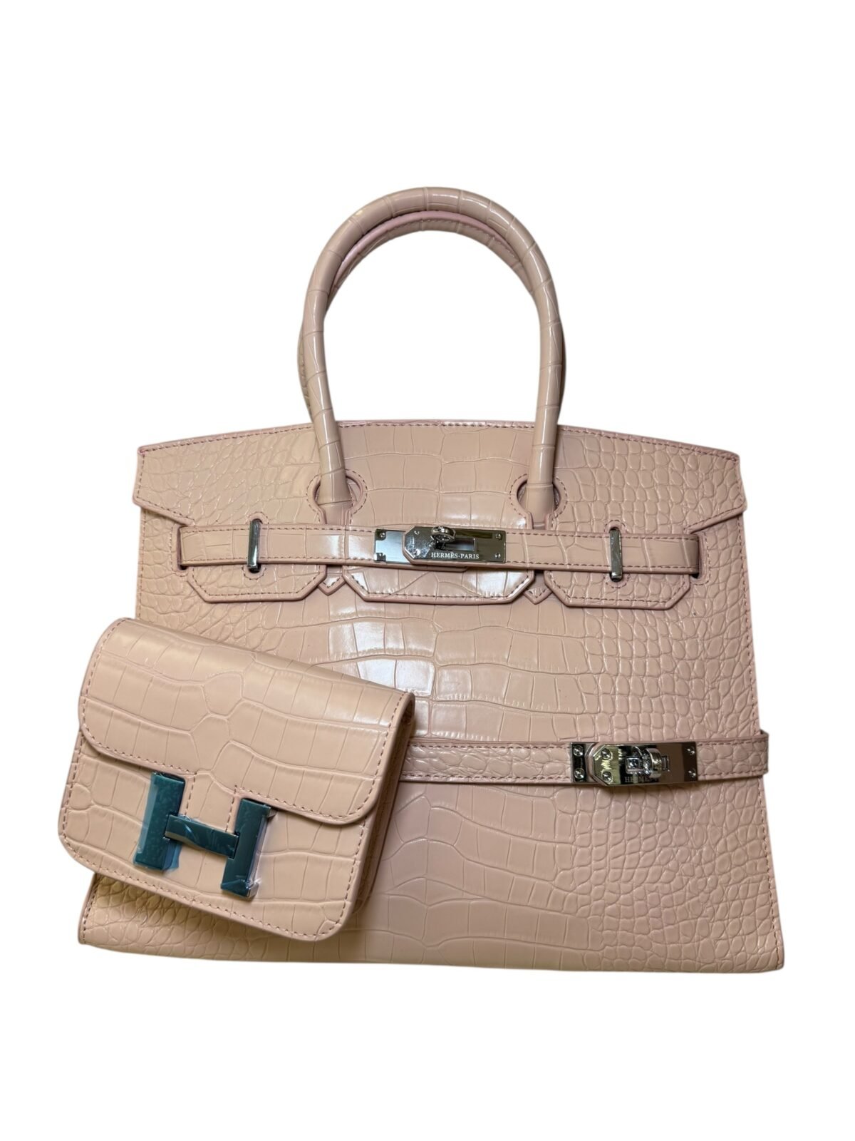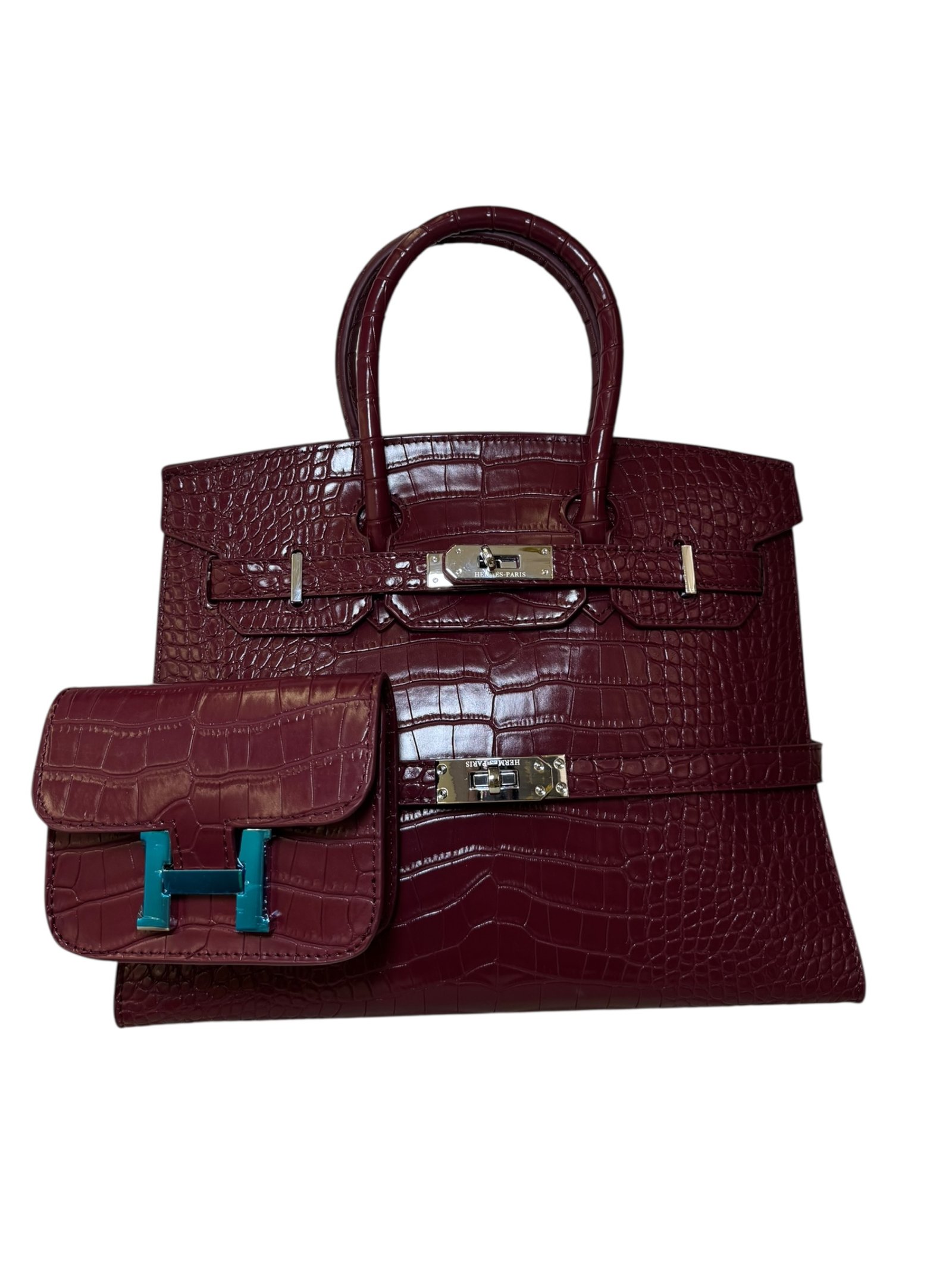 Main Handbag: Premium crocodile-embossed top-handle bag.