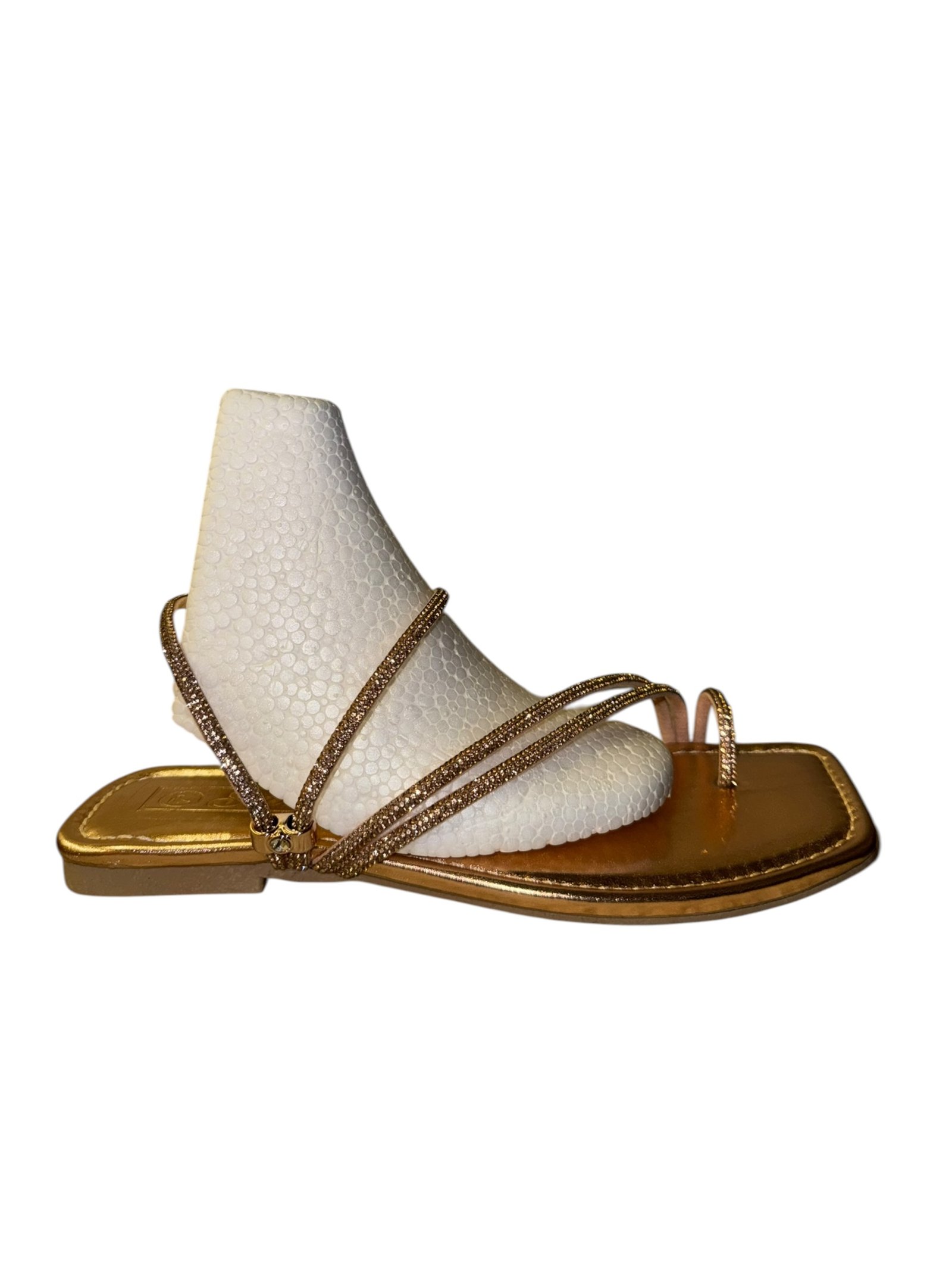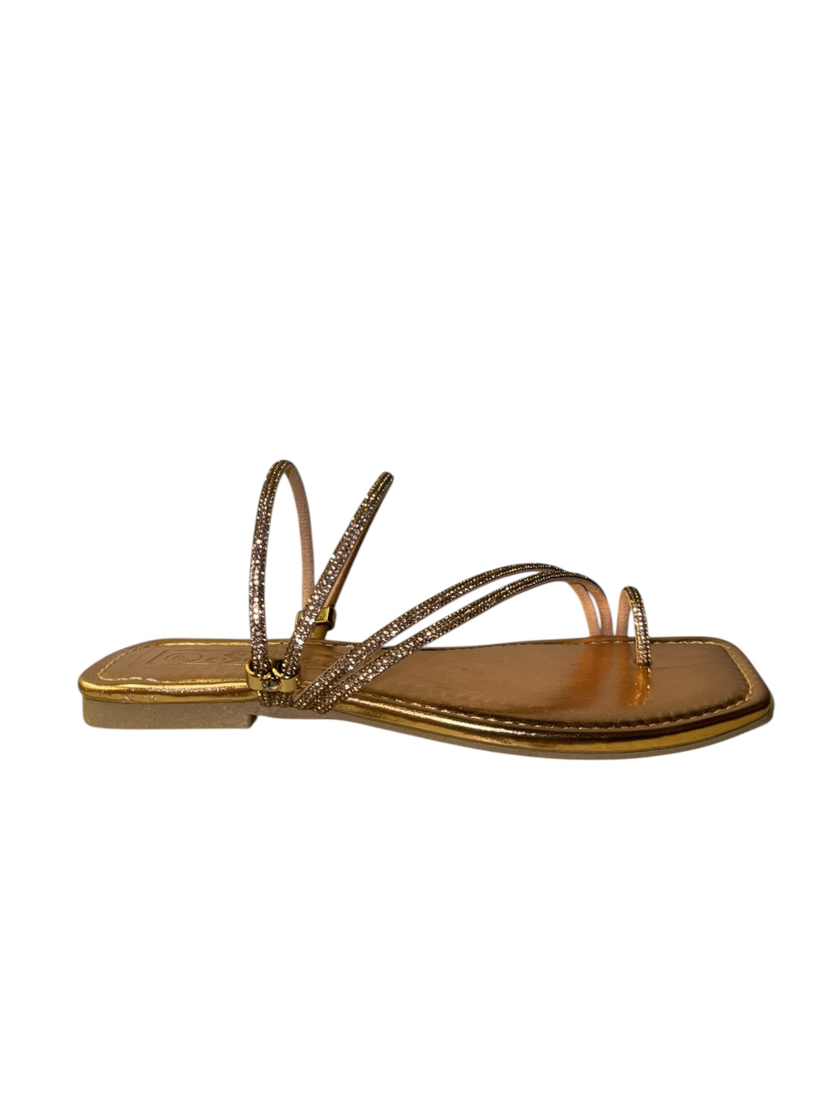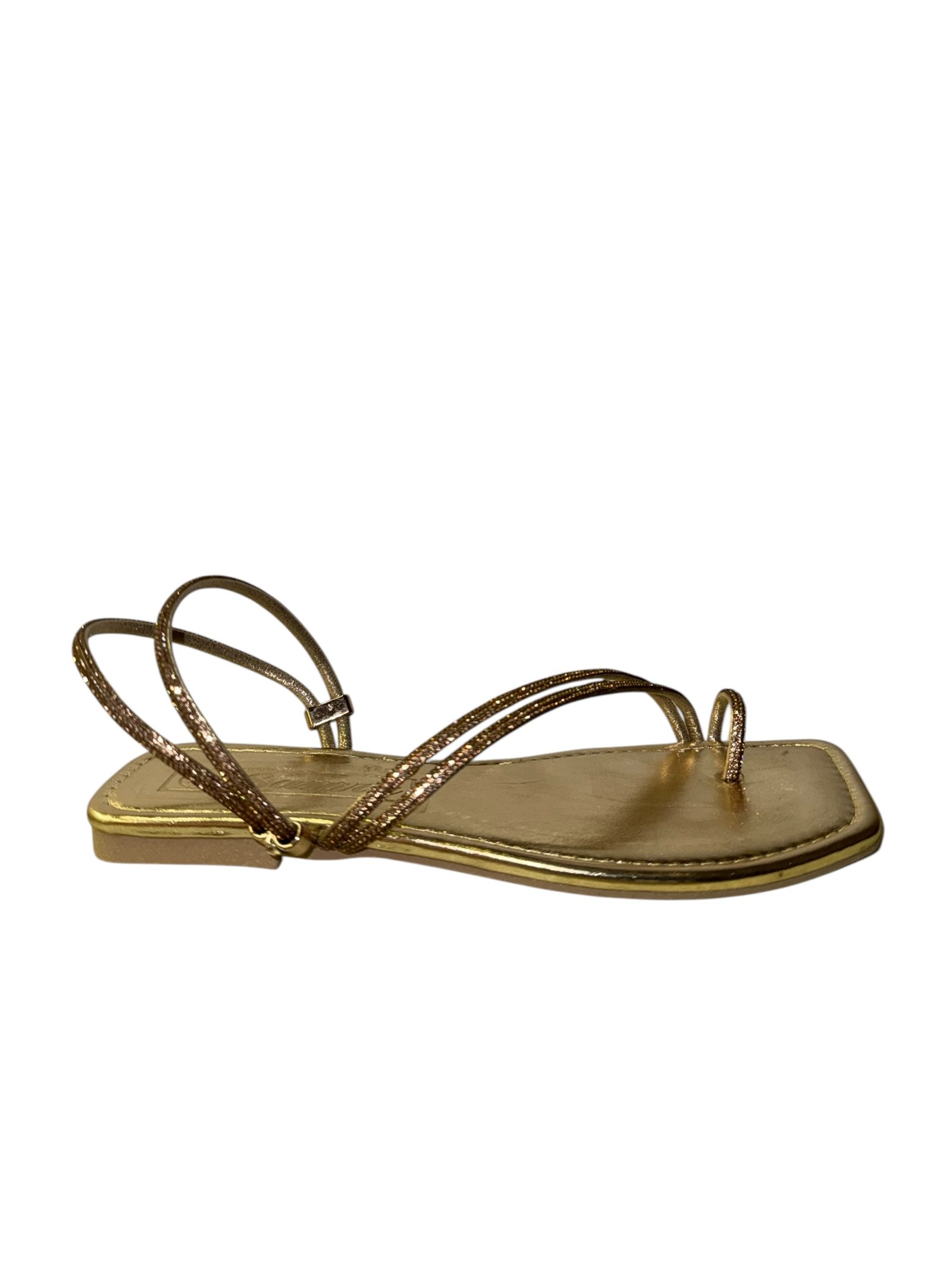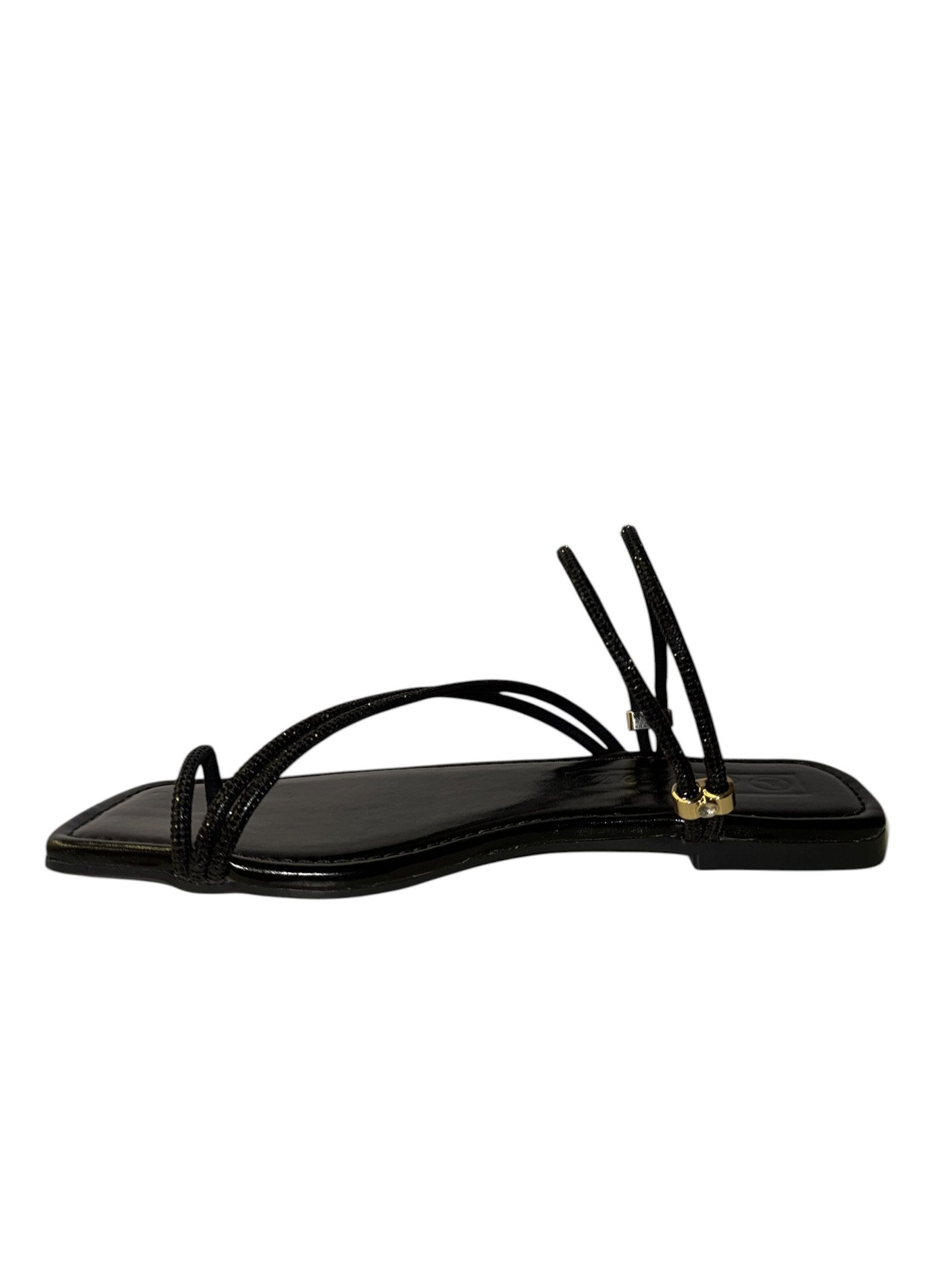 Elevate your look with our glitter-strapped flat sandals. Featuring a trendy square-toe design, they offer the perfect mix of comfort and glamour for any outfit.