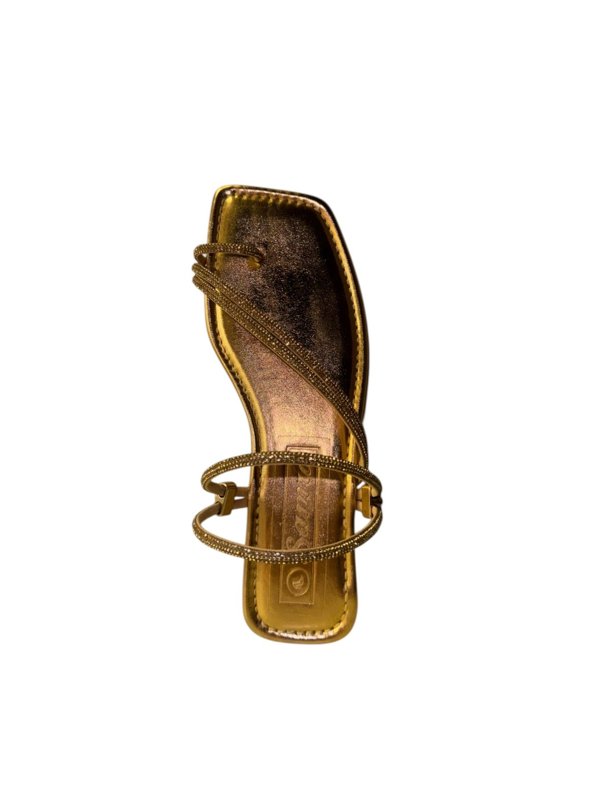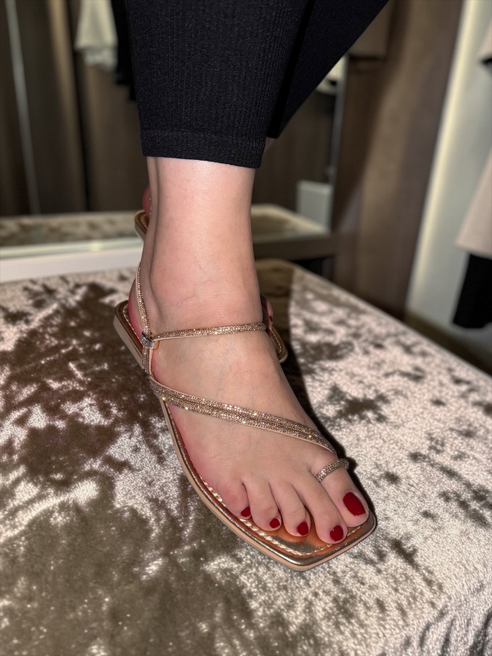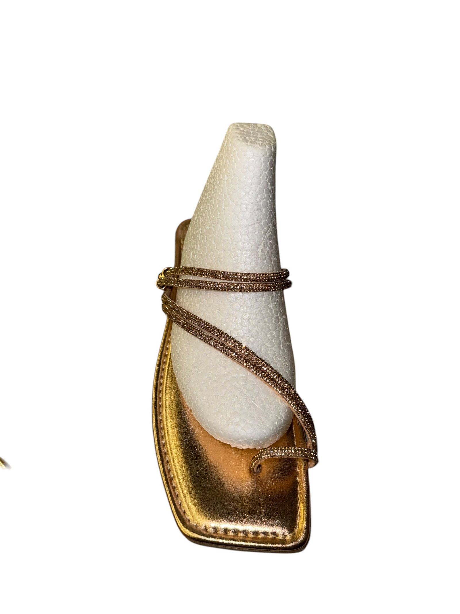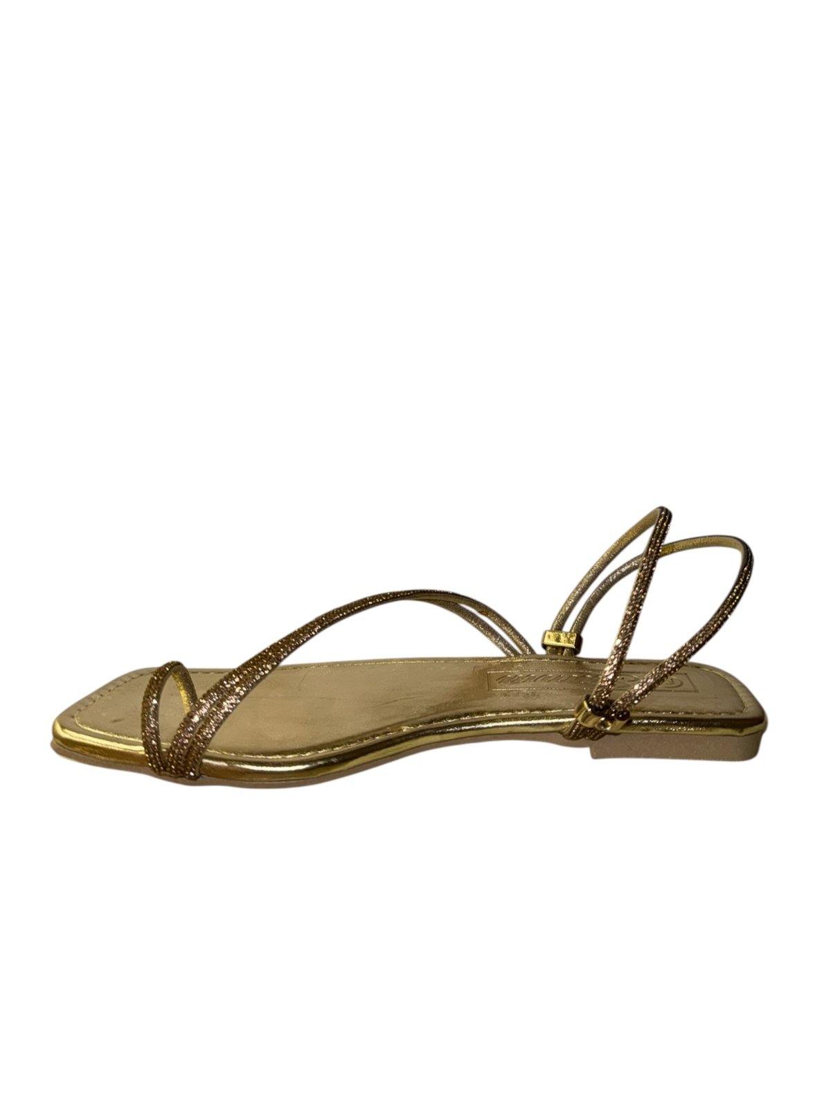 Elevate your look with our glitter-strapped flat sandals. Featuring a trendy square-toe design, they offer the perfect mix of comfort and glamour for any outfit.